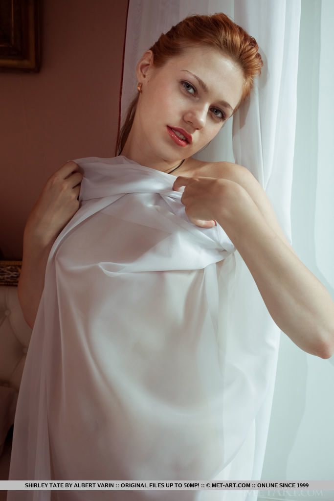 Lovely red teenie sexually poses flashing her tight nude body and a perfect smooth pussy