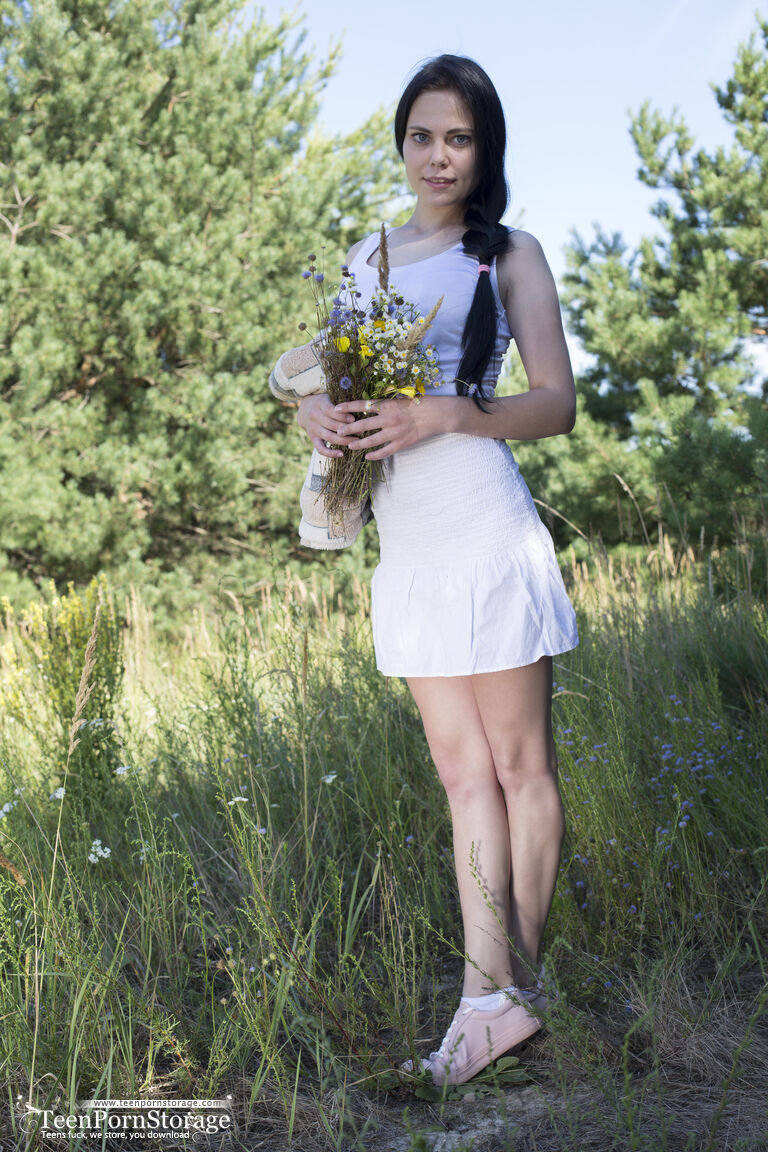 Gorgeous teen hottie strips naked outdoors exposing her slim body with nice tits and pussy
