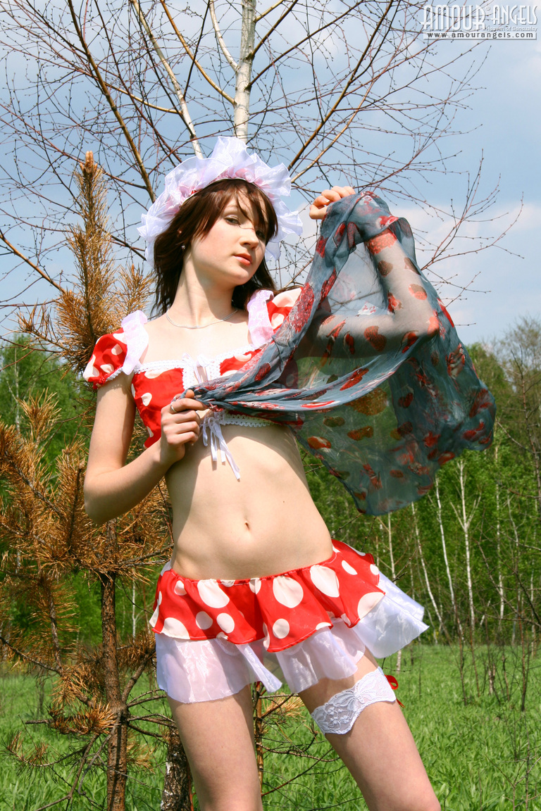 Lovely vagina erotic female chick posing in a cute doll outfit and showing off her tits and teen amateur euro teen erotica outdoors.