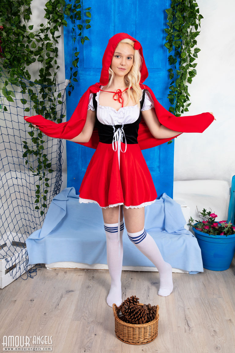 Mind blowing and extremely sexy blonde teen gets off her sexy knee socks and clothes and starts posing for you naked.