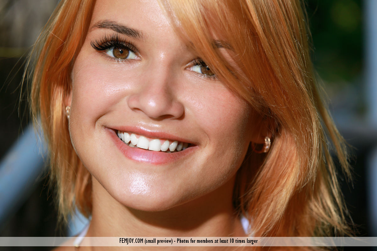 Lovely red teenie sexually poses flashing her tight nude body and a perfect smooth pussy