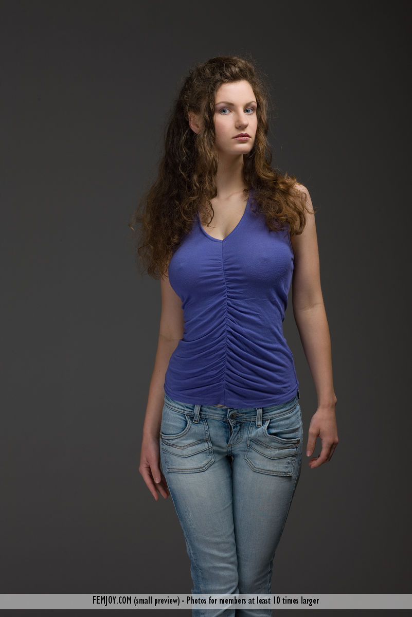 Hot and amazingly sexy teen model with nice and perfectly shaped tits gets fully naked while posing.