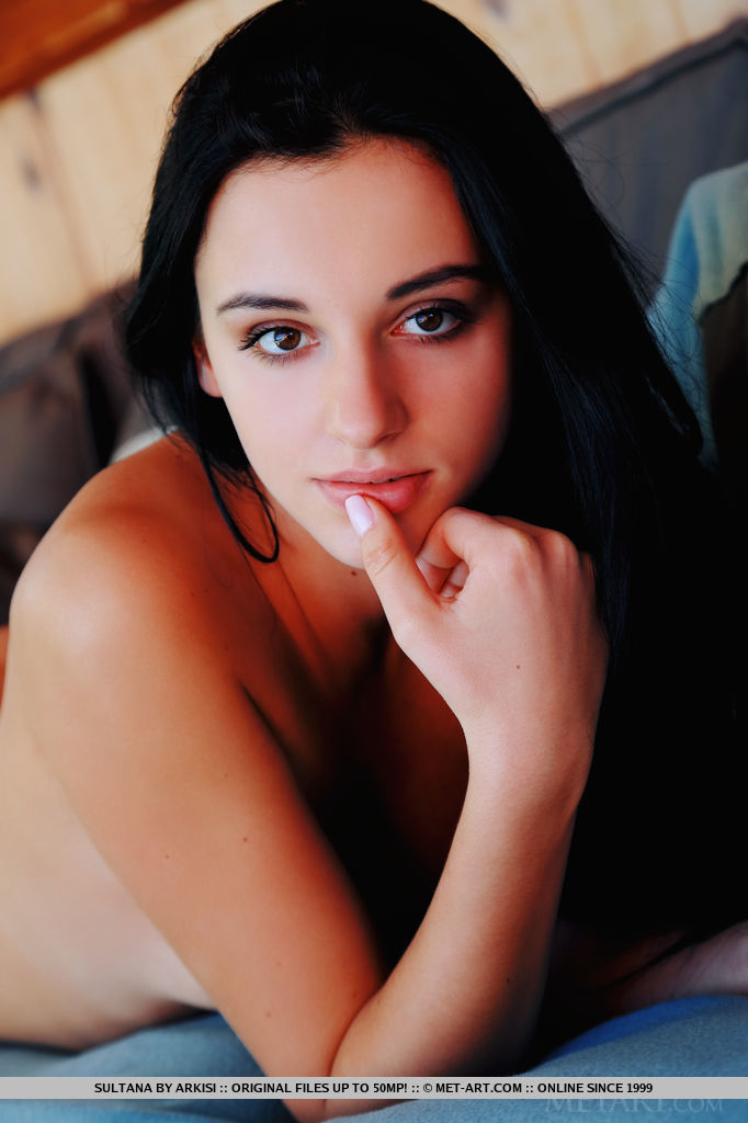 Cute looking teen model gets totally naked in front of the camera and starts playing with her incredible tits.