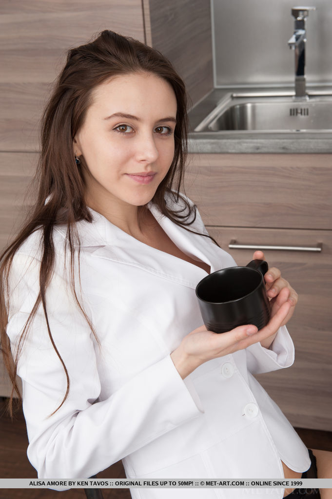 Adorable teen with juicy tits and booty gets hot and displays her tasty assets while cooking.