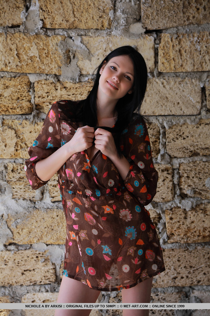 Nichole indulges her fans in a slow and exciting tease, flaunting her slim, slender body, beautiful, puffy breasts and well-toned limbs as she poses against the brick wall.