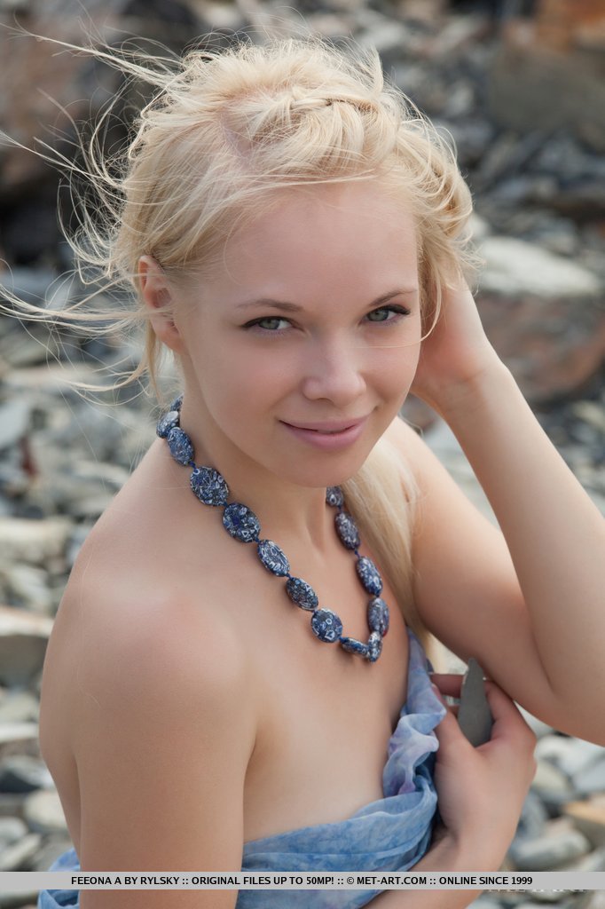 Feeona is a gorgeous sea nymph with a willowy physique. Her natural beauty stands out as poses naked against the azure sea and sky.