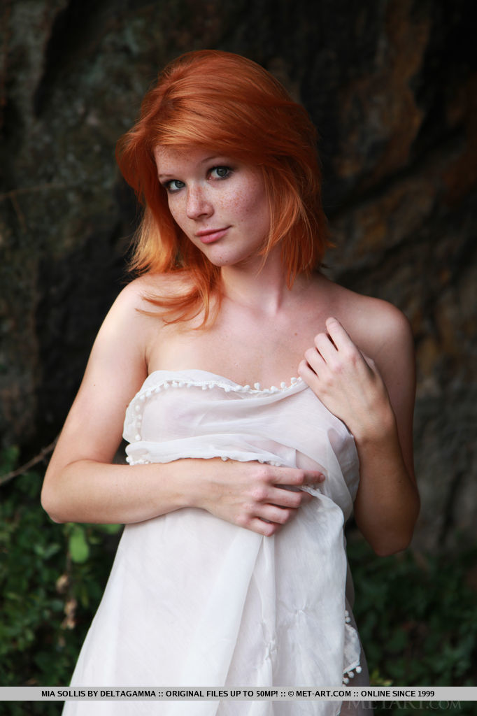 Stunning redhead mia sollis flaunts her perfect body and puffy nipples outside.