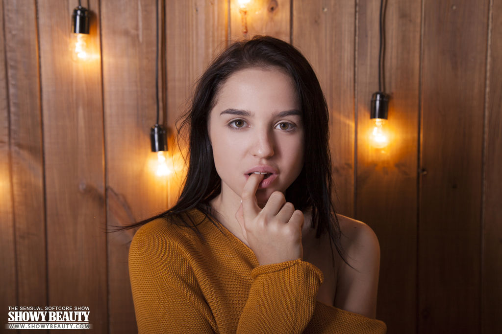 This incredibly sexy and gorgeous brunette teen enjoys showing her small tits and shaved pussy after getting naked.