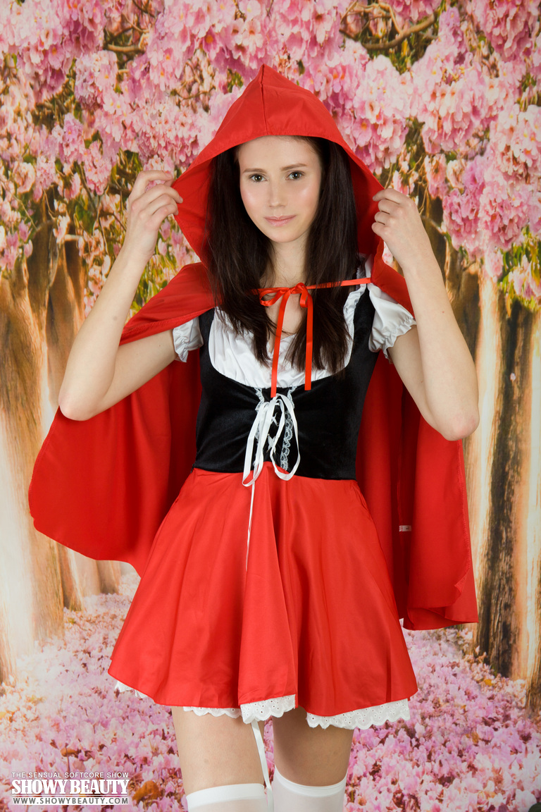 Lovely teen cutie dressed in a fancy fairy outfit playfully flashes her tits, ass and pussy
